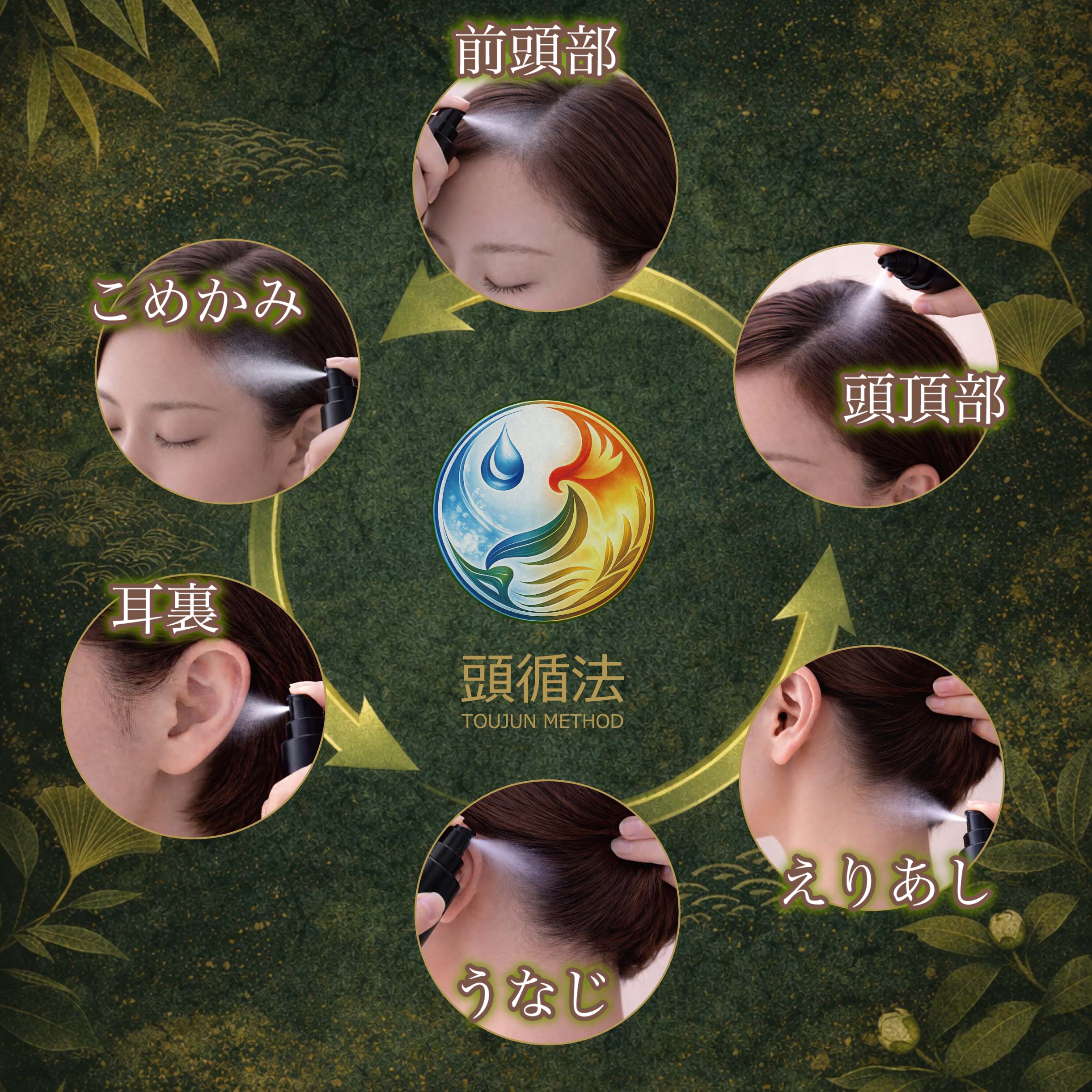「頭循法」は、頭の生え際を一周しながら、天然植物と海洋深層水の力をめぐらせることで、頭皮、ほうれい線、お顔の印象、全身までを整える、草木とミライ独自のケア法を提唱します。