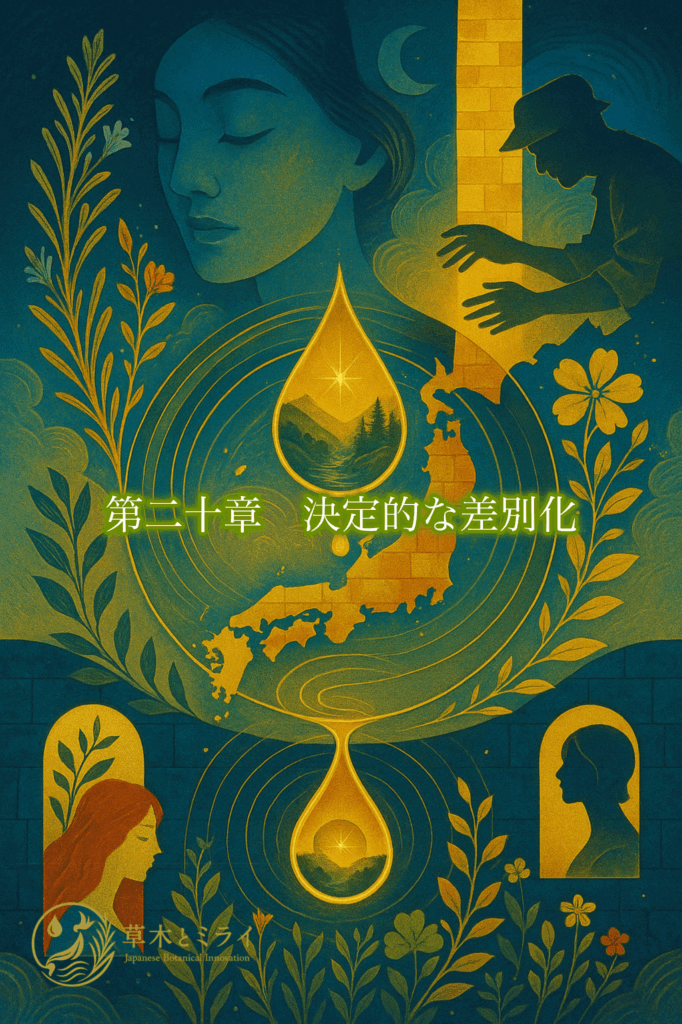草木とミライは、誰もが真似できる「商品」ではありません。原料・製法・体感・物語という四つの壁に守られた、唯一無二の存在です。消費者にとっては「他にはない体験」として。投資の観点からも「圧倒的な競争優位」として。この差別化こそが、草木とミライ最大の価値なのです。