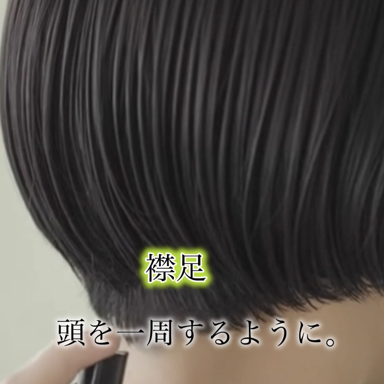 2. こめかみ・耳の裏・うなじ・襟足へと、頭を一周するように。